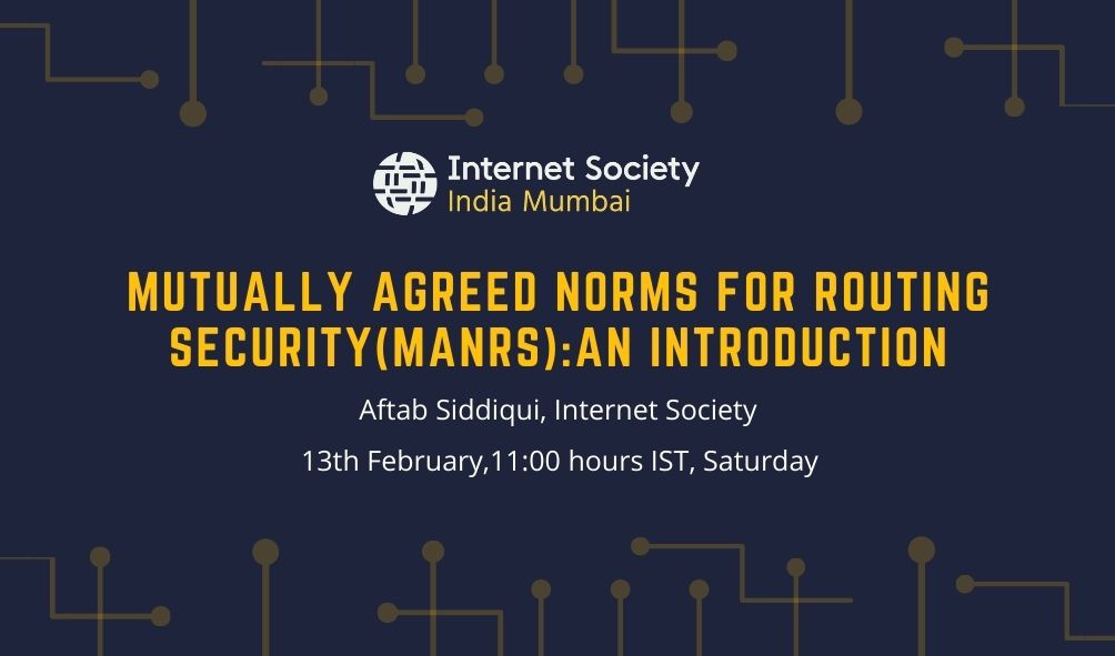 Dear all, ISOC India Mumbai Chapter,an ICANN APRALO ALS, invites you to an engaging webinar on the topic " Mutually Agreed Norms for Routing Security (MANRS): An Introduction" by Mr Aftab Siddiqui, Senior Manager, Internet Society, APAC on Saturday, 13th February 2021 from 11 am IST to 12pm IST. To attend the event, kindly register at https://docs.google.com/forms/d/1fr5GwJwMS2RMGC0G8xn02H85rRkvqzamIeKLGUpaiC8... The zoom link will be emailed one day prior to the event. Please feel free to circulate this registration link with interested people in your social circles. Regards, Prateek ISOC india Mumbai ALS Representative.
