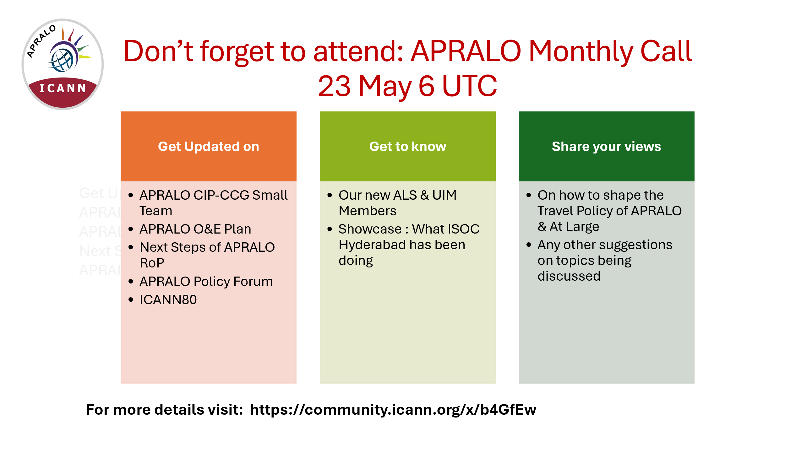 Do Join APRALO Monthly Call of May 23 May 6 UTC