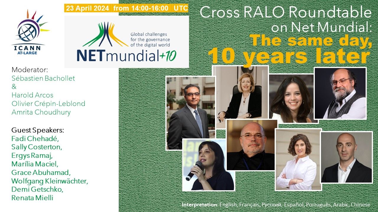 ** TODAY / AUJOURD'HUI / HOY** Cross RALO Round Table on Net Mundial - the same day, 10 years later | Tuesday, 23 April from 14:00-16:00 UTC