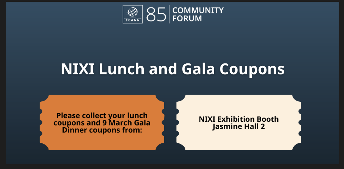 One more item to share – Gala/Welcome Reception/ An Evening with Rhythms of Tradition and Musical Fusion is located on the bottom floor of Convention Centre [cid:image001.png@01DCAF9A.CBF7A0A0] From: Terri Agnew <terri.agnew@icann.org> Date: Monday, March 9, 2026 at 7:00 AM To: "council@icann.org" <council@icann.org> Cc: GNSO-Secs <gnso-secs@icann.org> Subject: Monday, 09 March 2026 | GNSO Council daily reminder Dear councilors, Here are the council sessions being held today. Whether onsite or participating remotely, councilor presence is highly encouraged. Please join on time for sound checks and for the sessions to begin in a timely manner. Zoom access information will not be circulated on this list, please refer to your schedule <https://icann85.sched.com/> on the ICANN85 website. Note, certain sessions are considered mandatory attendance for seated councilors and are marked as such. Monday, 09 March 2026 * 09:00 – 10:15: Welcome Ceremony<https://icann85.sched.com/event/2GwkM/welcome-ceremony> * 10:45 – 12:00: Plenary Session - From Stability to Survivability: ICANN/s role in the Future of Internet Resilience<https://icann85.sched.com/event/2GwkI/from-stability-to-survivability-icanns...> * 13:15 – 14:30: Community Session – WSIS + 20 Lessons Learned & Next Steps<https://icann85.sched.com/event/2GwkG/wsis+20-lessons-learned-next-steps> * 13:15 - 14:30: DNS Abuse Mitigation PDP1 Working Group Session (3 of 4)<https://icann85.sched.com/event/2Gwlx/gnso-dns-abuse-mitigation-pdp1-working...> * 15:00 – 16:00: DNS Abuse Mitigation PDP1 Working Group Session (4 of 4)<https://icann85.sched.com/event/2Gwlz/gnso-dns-abuse-mitigation-pdp1-working...> * 16:30 – 17:30: GNSO Council Informal Meeting [Closed session] <https://icann85.sched.com/event/2Gwlu/gnso-council-informal-meeting-c> - ( All councilors) * 18:30 – 19:30: Welcome Reception hosted by NIXI<https://icann85.sched.com/event/2Gwpu/welcome-reception-hosted-by-nixi> Thank you. Kind regards, Terri Policy Team Supporting the GNSO
