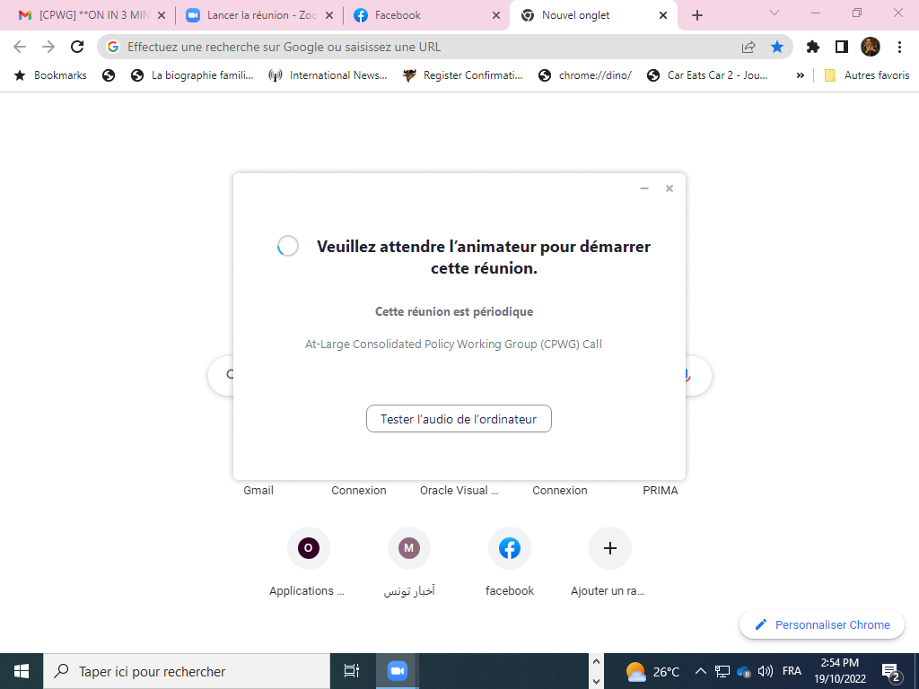 UPDATED Meeting invitation: (NO French interpretation) / At-Large Consolidated Policy Working Group (CPWG) Call on Wednesday, 19 October 2022 at 13:00 UTC