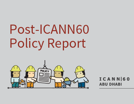 The ICANN60 Annual General Meeting concluded in Abu Dhabi, United Arab Emirates, on 3 November. The Post-ICANN60 Policy Report contains updates from our Supporting Organizations and Advisory Committees. The report is now available in English, and will soon be published in all six U.N. languages.