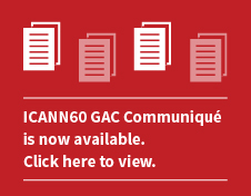 The Governmental Advisory Committee (GAC) Communiqué from ICANN60 is available for review here. ICANN receives input from governments through the GAC. Its key role is to give advice to ICANN on issues of public policy, especially where there may be an interaction between ICANN activities or policies and national laws or international agreements. The GAC meets three times a year at ICANN Public Meetings, where it discusses issues with the ICANN Board of Directors, Supporting Organizations, Advisory Committees, and other groups.