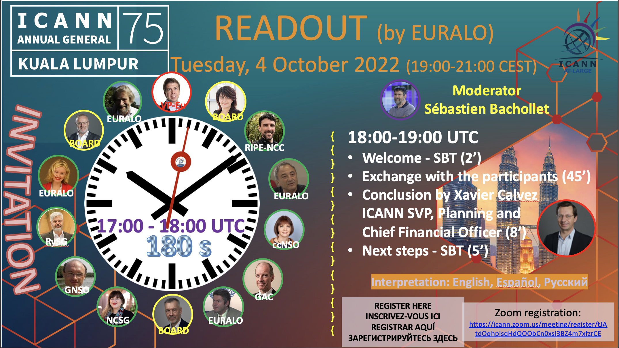 Please register and share - JOIN US! | ICANN75 Multilingual read-out (by EURALO)| Tuesday 04 October 2022 at 17:00 UTC