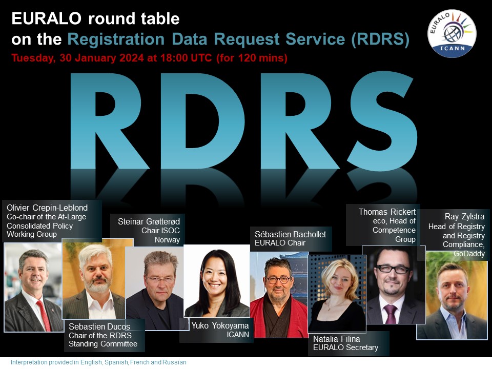 Reminder - REGISTER | EURALO Round Table on RDRS | 30 January 2024 at 18:00 UTC