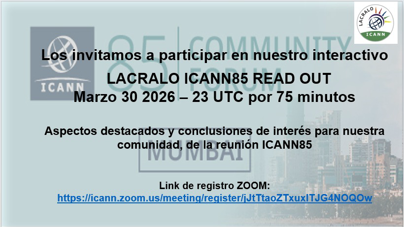 REMINDER- LACRALO ICANN 85 READOUT- MARCH 30TH - 33 UTC for 75 minutes