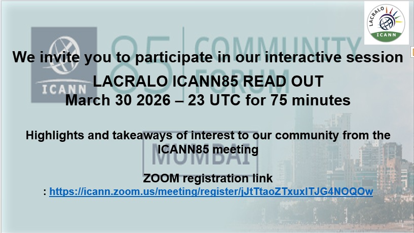 LACRALO ICANN 85 Readout - - MARCH 30th 2026 - 23 UTC