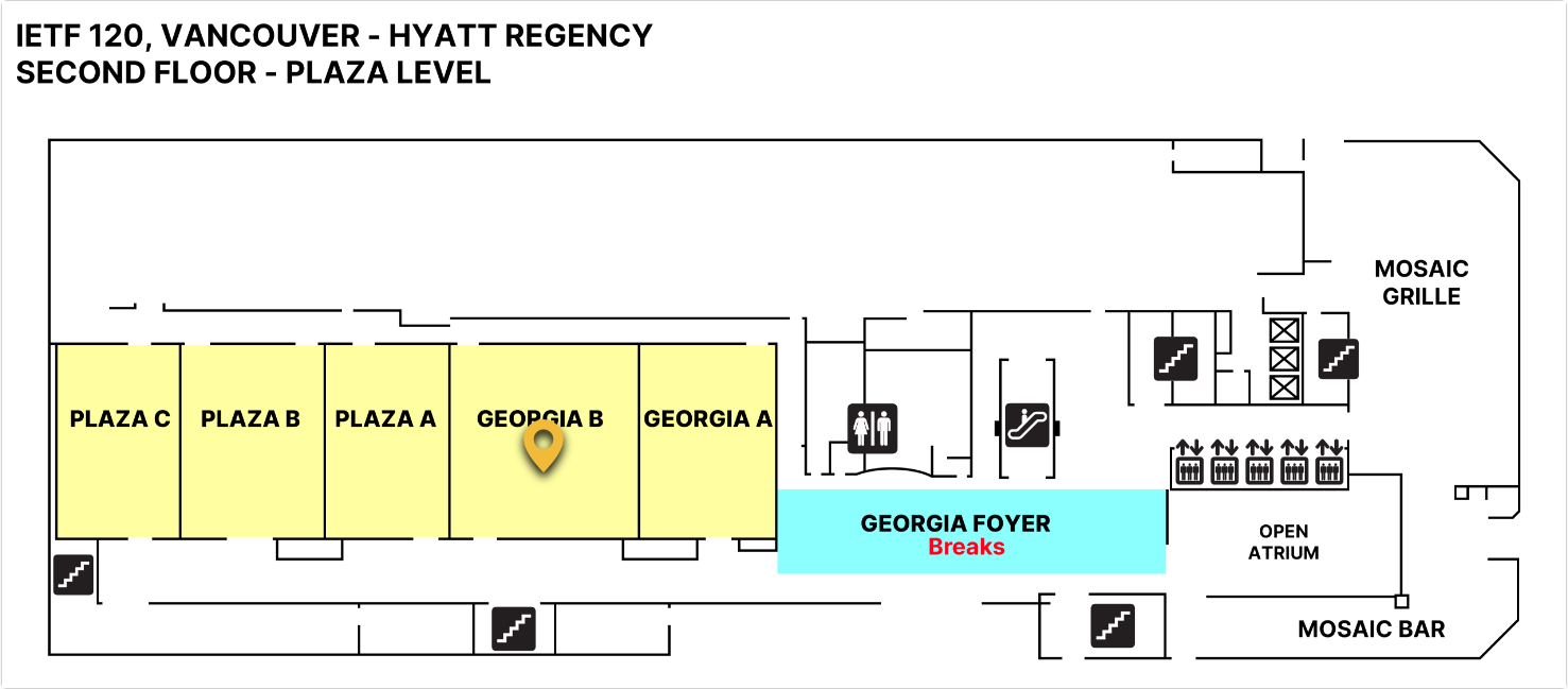 ***REMINDER*** Topic: RSSAC Caucus Meeting Time: July 21, 2024 23:00 Universal Time UTC (16:00 PDT/local time) Location: Georgia B | Hyatt Regency Vancouver, Canada (see the map below) IETF 120 page: https://www.ietf.org/meeting/120/ Agenda: https://docs.google.com/document/d/1vhyzFldc_kNKujh2hRwXLPf4D_lNLbj-T7_Prh68... Remote Participation: Please note that you must have an account on the IETF Datatracker to access the session; however, you do not need to be registered for the IETF120 meeting. IETF Datatracker accounts can be created here: https://datatracker.ietf.org/accounts/create/ Meetecho Link: https://meetecho-or.ietf.org/client/?group=rssac